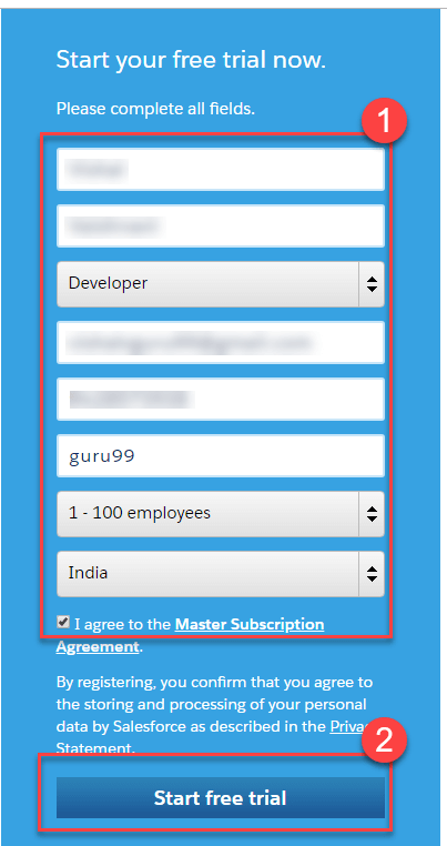 Salesforce提供30天免费试用,我们将注册试用。