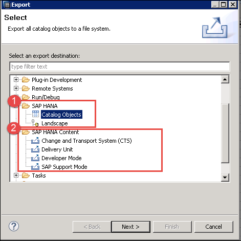 SAP HANA 对象将显示两个导出选项 –