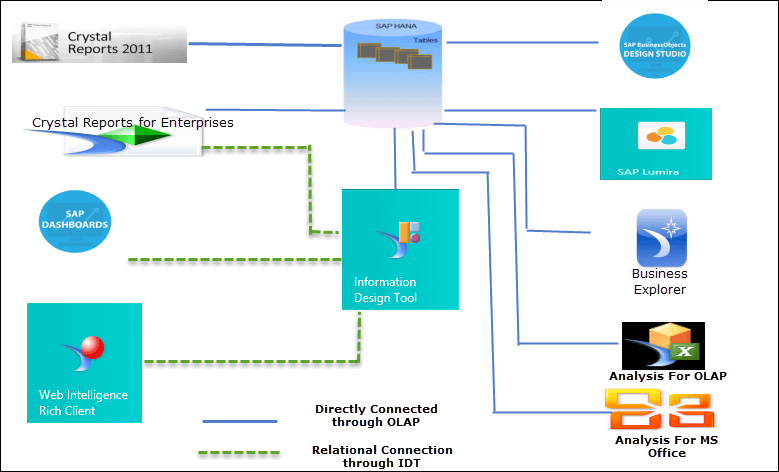 现在我们将讨论报表工具中的信息视图——报表工具中的 JDBC、ODBC 和 ODBO 驱动程序是 SAP HANA 客户端的一部分。