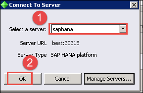 - 点击“连接”按钮连接到 SAP HANA 服务器。