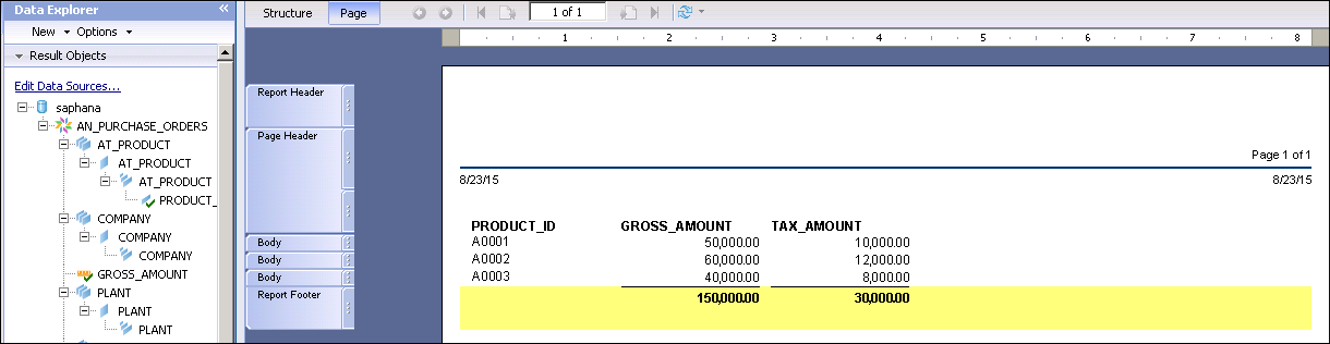 - SAP Crystal Report Enterprises 中的报表,附有 SAP HANA 信息视图的示例。
