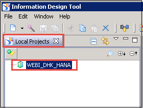 项目名称“WEBI_DHK_HANA”将显示在“本地项目”选项卡下,如下所示。