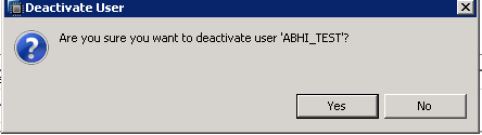 将显示消息“User ‘ABHI_TEST’ deactivated”。De-Activate 图标将更改为“Activate user”。现在我们可以从同一个图标激活用户。