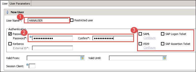 1. 在 SAP HANA 中创建用户 –只有具有 ROLE ADMIN 权限的数据库用户才能在 SAP HANA 中创建用户和角色。