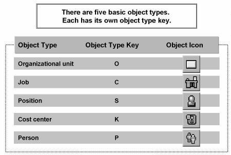 OM 的每个方面都记录为对象类型,这是一种将类似数据分组的方法。例如,组织单位是一种对象类型,职位是另一种对象类型。