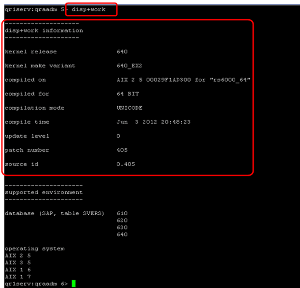 然后通过命令 disp+work 从操作系统级别检查内核版本。它应该显示补丁编号已增加。