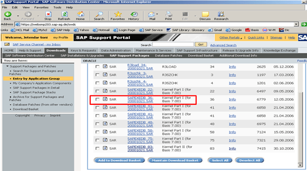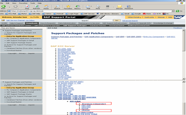 - 然后转到 Downloads -> SAP Support Packages -> Entry By Application Group -> SAP Kernel 6.00 64 Bit -> 选择您的操作系统 (LINUX/WINDOWS/SOLARIS/AIX) -> 数据库相关和数据库无关的内核补丁。