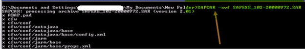 第 4 步) 现在使用 sapcar exe 解压缩这些 .SAR 文件。使用的命令将是