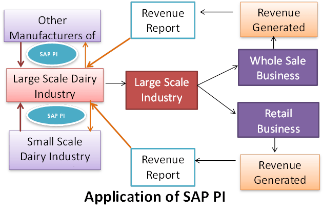为了更清楚地理解 SAP PI 的概念,我们以一个大型乳制品行业为例,该行业在一个州的大部分地区运营并占据主导地位。但该地区还有一些小型乳制品行业与大型行业并行运营,由于与大型行业相比存在价格差异,这些小行业并未盈利。因此,为了避免价格冲突并维持整个地区的价格一致,大型和小型行业决定借助 SAP PI 进行联合。它们通过 SAP PI 相互连接,并开始作为一个单一的单位运作。现在,通过 SAP PI,它们能够交换所有与乳制品行业相关的信息,包括定价,并分享同等利润。