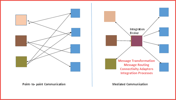 在 SAP PI 之前,企业之间通过点对点通信进行连接。但这种方式不适用于多个复杂的流程。为了在多个企业之间实现顺畅的通信,采用了中介通信或集成代理,而 SAP PI 很好地适应了这种系统。它通过一个称为集成代理的中心位置实现了不同流程的互连,这与更像蜘蛛网的点对点连接不同。集成代理或服务器是中介通信的组成部分,由基于 Java 的高级适配器引擎 (AAE) 和一个用于路由的集成引擎组成。中介通信基于集成代理,通过交换 XML 消息来执行。