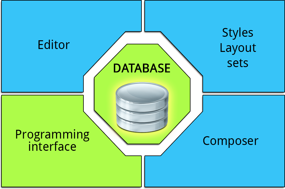 - 多个数据库表用于存储文本、样式和布局集