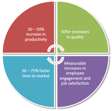 它是一个简单轻量级的框架,但能够处理大型价值流和复杂系统开发的需求。通过实施 SAFe 敏捷框架,您将获得以下好处: