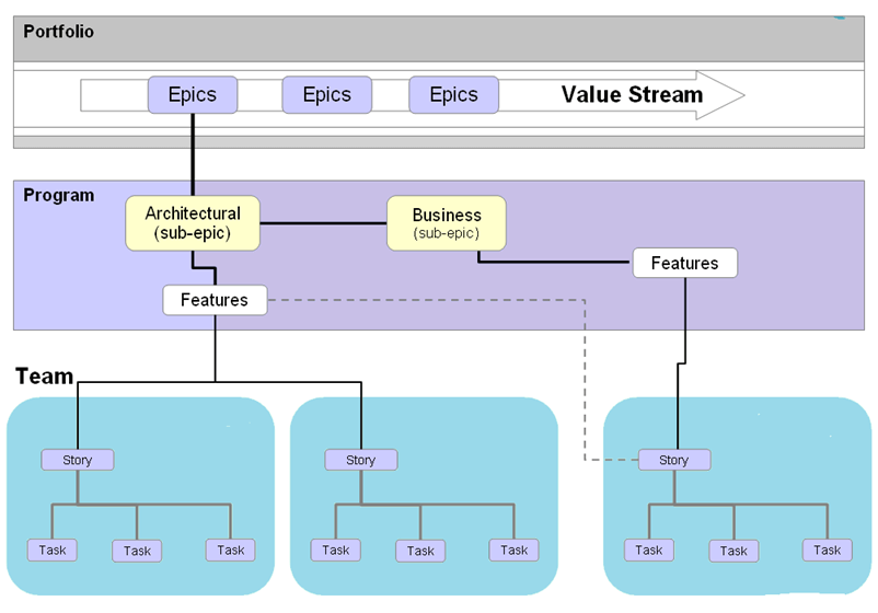 - SAFe 工件层次结构是 史诗 -> 功能 -> 用户故事。