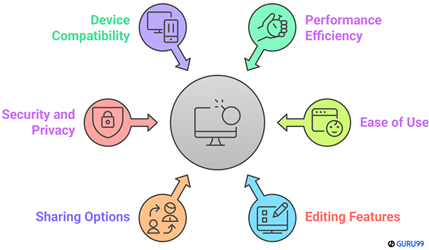 在Guru99,我们通过提供准确、客观和相关的信息来优先考虑可信度。我们的专家团队对 40 多种屏幕截图工具进行了 100 多个小时的测试,确保我们对最佳屏幕截图软件的指南全面且无偏见。内容重点介绍了免费和付费解决方案,并提供了对功能、可用性、优缺点的见解。有效的屏幕截图工具必须提供速度、清晰度和灵活性,因此我们根据性能、易用性、可靠性、支持和用户反馈评估了每种工具。我们在审查工具时关注以下因素: