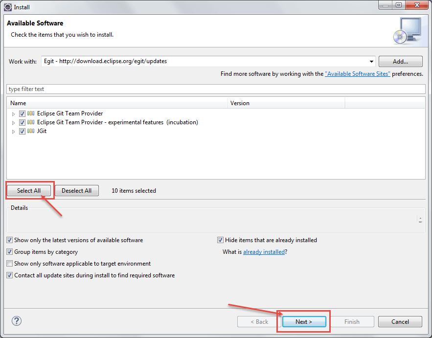 - 输入位置 https://download.eclipse.org/egit/updates/,然后