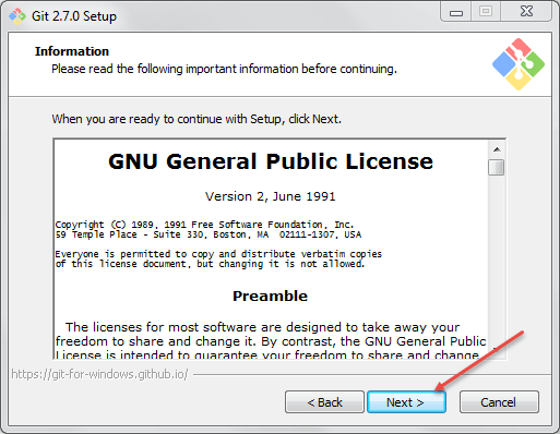 步骤 7) 阅读 GNU 通用公共许可证并点击下一步