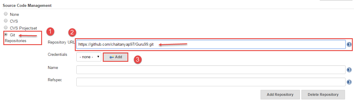 如果您在 GitHub 中有多个仓库,您需要在仓库的 Refspec 字段中添加名称。
