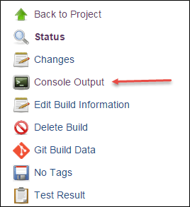 步骤 18) 点击构建编号后将出现以下屏幕,我们可以在此步骤中查看控制台输出,点击控制台输出。