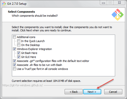 - 选择“从 Windows 命令提示符使用 Git”以从命令行运行 Git,然后