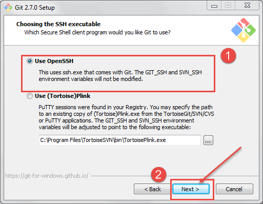 - 选择“使用 Open SSH”它将帮助我们从命令行执行命令,并且它将设置环境变量。
