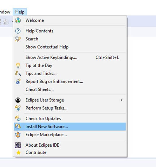 步骤 1) 进入 Eclipse Marketplace。帮助 > 安装新软件