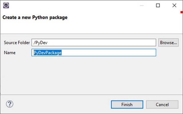 创建“PyDev 项目”后,您将创建一个新的 Python 包。