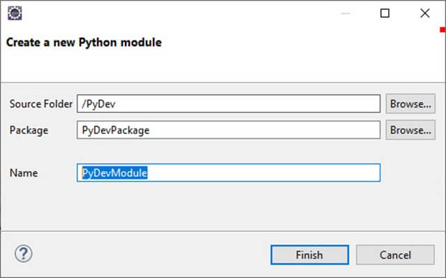 创建新包后,下一步是创建 PyDev 模块。该模块包含一些用于初始化的 Python 文件。这些文件或模块中的函数可以导入到其他模块中。因此,无需再次重写程序。