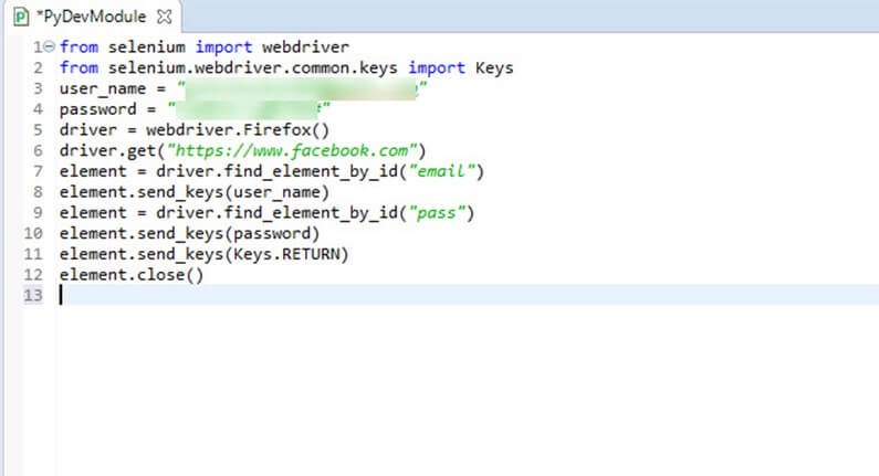 步骤 10) 编写您使用 Python 的 Selenium 代码,如下所示