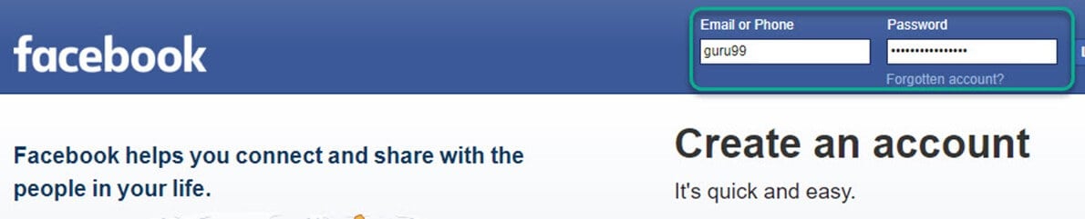 用户名“guru99”和密码的值已输入。