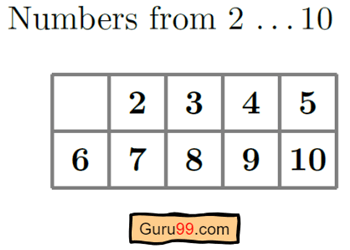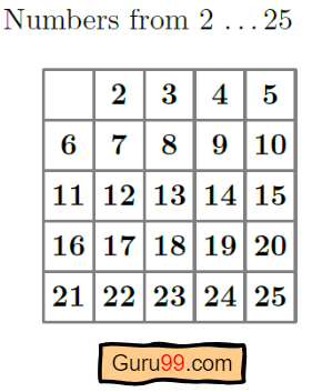 步骤 1) 在第一步中,我们将取一个从 2 到 25 的数字列表,因为我们选择了 n=25。