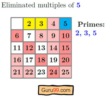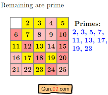 步骤 5) 剩余的未标记数字将是从 2 到 25 的素数。