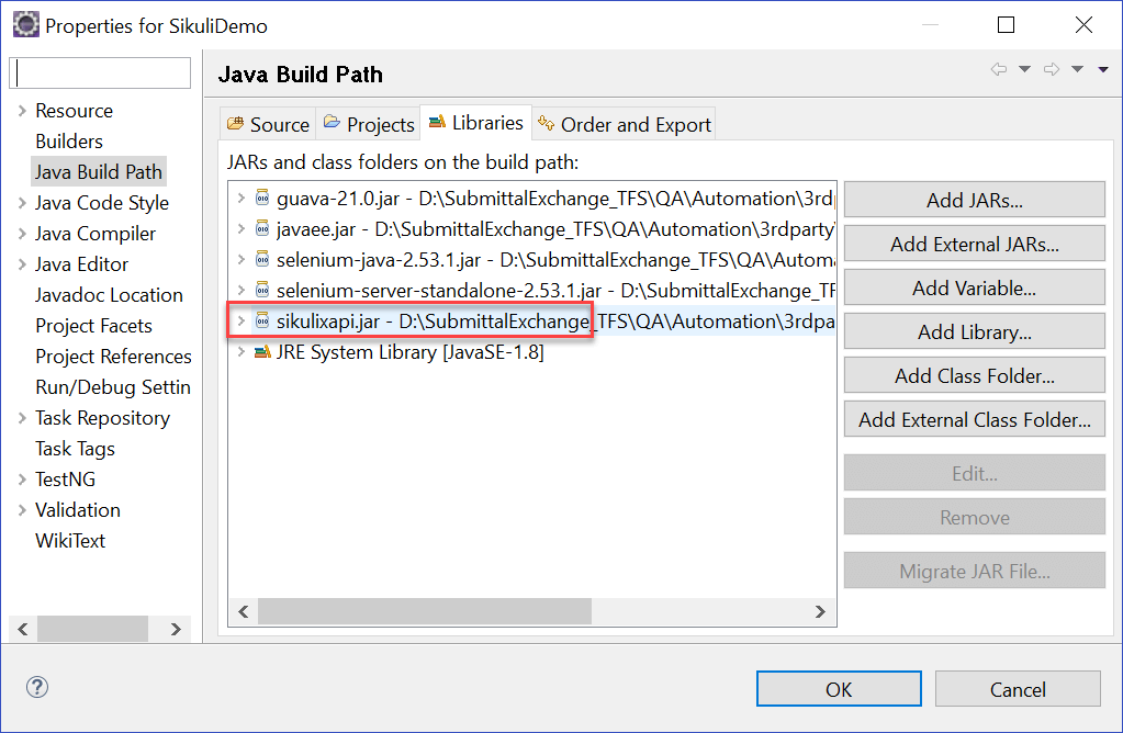 将 JAR 文件添加到项目构建路径后,即可使用 Sikuli 提供的类。