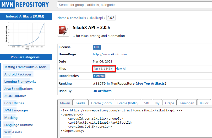 https://mvnrepository.com/artifact/com.sikulix/sikulixapi/2.0.5