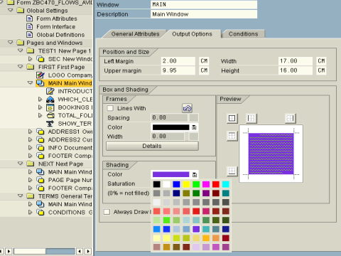 对于背景图片和图形,您可以选择黑白或彩色位图图像,并以标准文本的形式存储。您可以从智能表单屏幕绕道,打开表单图形屏幕。事务代码:Se78