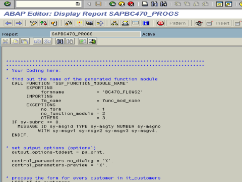 打印程序将调用 FM ‘SSF_FUNCTION_MODULE_NAME’ 以在运行时获取函数模块名称。然后它将调用由此获得的函数模块来执行智能表单。