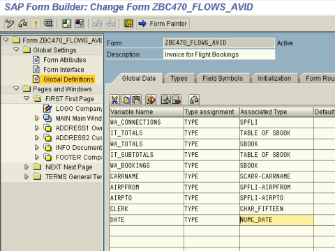 全局数据声明:此处定义的数据可在整个 Smartform 中用于编码目的。