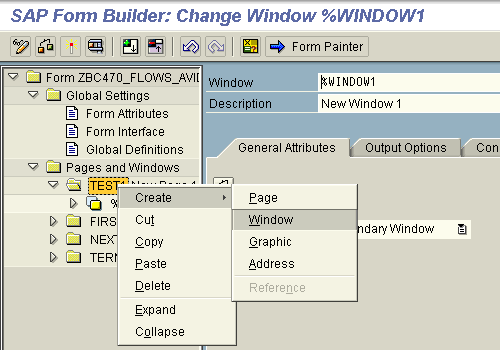 导航窗口由节点和子节点组成。它们包含所有属于 SAP 表单的元素(文本、窗口等)