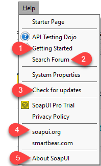 - 显示 SOAP UI 的构建和版本信息。