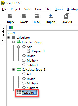 创建的测试套件将显示在导航器窗格中,如下所示。