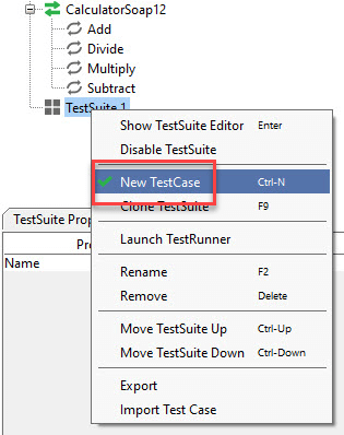步骤 1) 在一个测试套件中,我们可以通过右键单击“测试套件”并选择“新建测试用例”来创建多个测试。