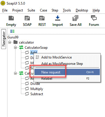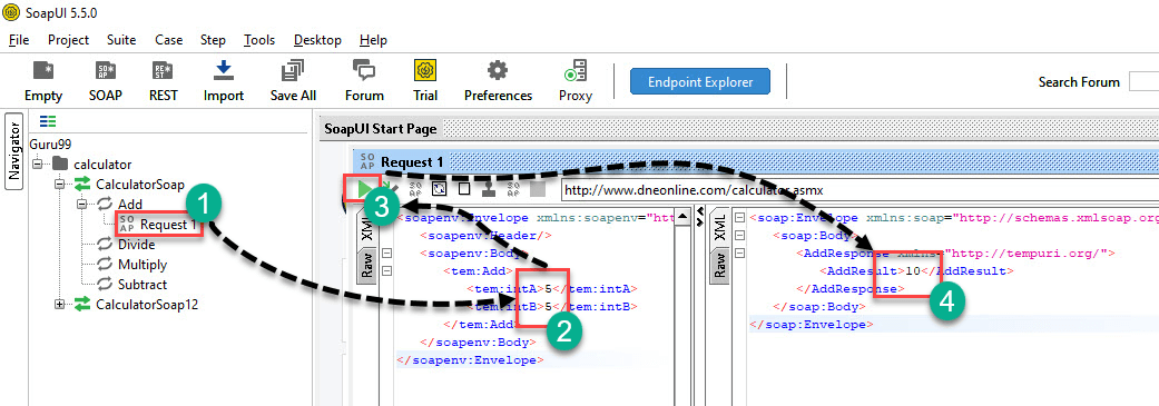 步骤 2) 我们将使用以下 SOAP 请求 http://www.dneonline.com/calculator.asmx?wsdl