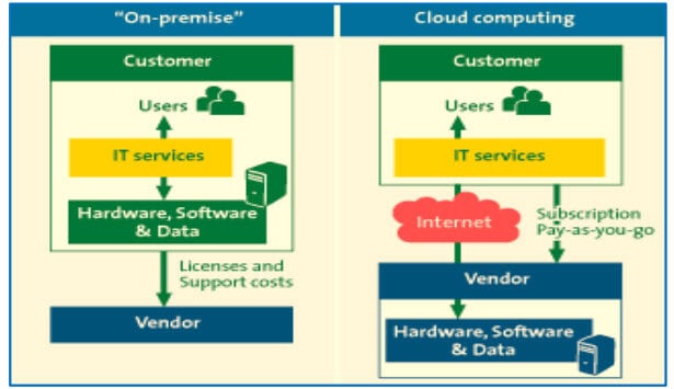 | 这是一种按需计算范例,其中各种工作负载托管在云中。 | 公司或组织在本地部署环境中托管所有内容。 |