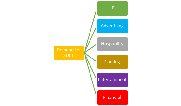 公司有采用新技术和方法学的趋势。因此,SDET 软件专业人员需求量很大。测试中的软件开发工程师主要在以下领域受到需求