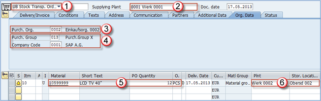 我们可以使用一种特殊的采购订单类型 – 在途库存订单。交付流程可以在库存管理或物流执行的装运组件中完成。