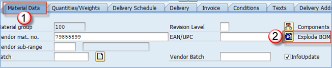 第二步)在“物料数据”选项卡上,点击“组件”或“展开物料清单”图标。