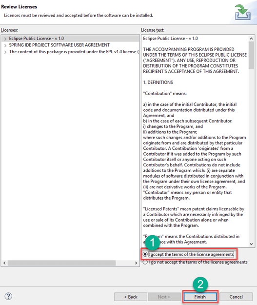- 单击“I accept the terms of the license agreements”单选按钮。