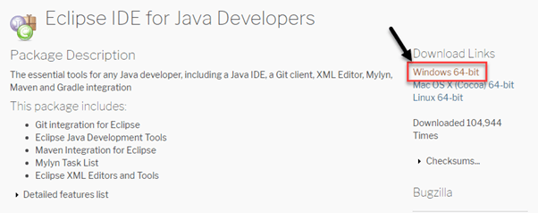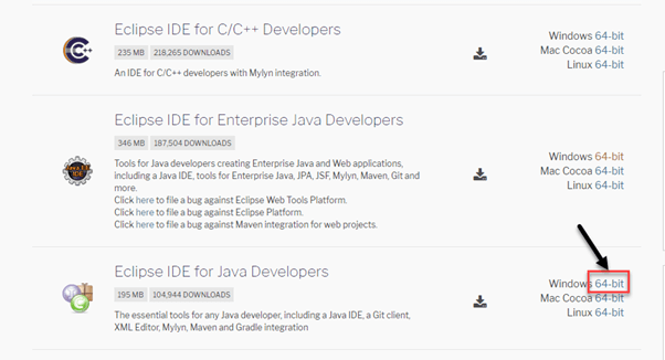 转到 Eclipse IDE for Java Developers 并单击“64-bit”链接。