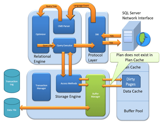 - 现有查询计划:缓冲区管理器检查执行计划是否在存储的计划缓存中。如果是,则使用查询计划缓存及其相关数据缓存。