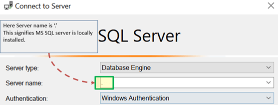 连接本地数据库 – 在SQL Management Studio中,“服务器名称”选项可以是