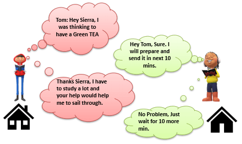 这里汤姆和星巴克在不同的物理位置。汤姆在家,星巴克在繁忙的市场。他们通过蜂窝网络进行通信。同样,MS SQL SERVER 能够通过TCP/IP 协议进行交互,其中客户端和 MS SQL Server 彼此远程,并且安装在单独的机器上。